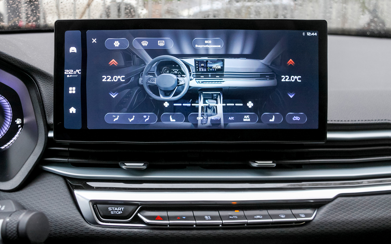 Одна из сильных сторон Belgee S50 — продуманное управление климат-контролем. Большинство функций выведено на физические клавиши, что позволяет быстро настраивать температуру и обогрев, не отвлекаясь на сложные меню. Эффективно работают подогрев руля, обогрев зоны покоя щеток ветрового стекла и подогрев передних сидений. Последним, правда, приходится управлять через дисплей медиасистемы, но по скорости прогрева к ним замечаний нет.